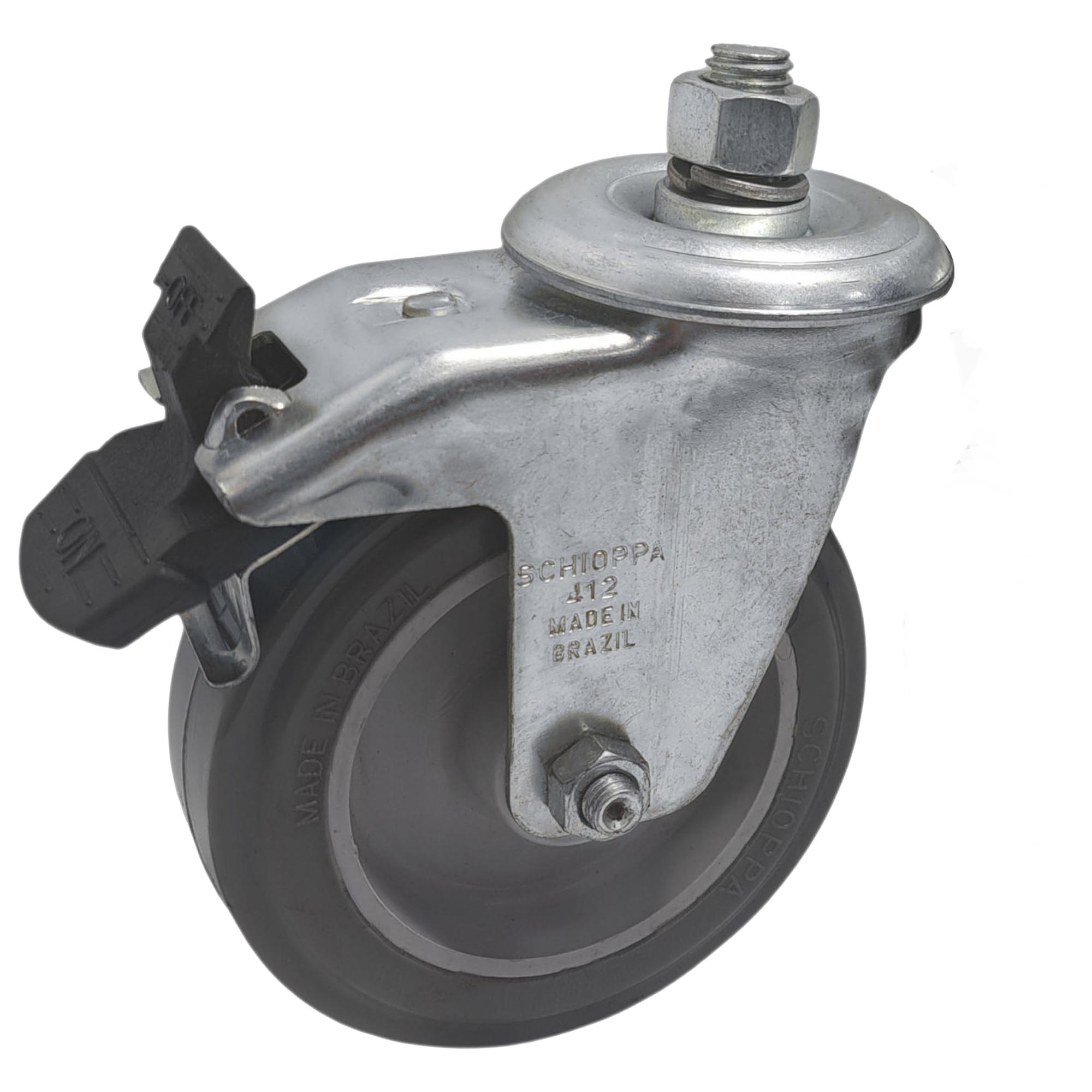 Rodízio Giratório com Freio Schioppa GLE 412 BP – 100mm | 65kg - 1 Unidade
